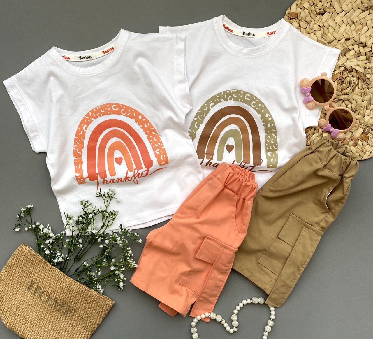 ست تاپ شلوارک بیرونی دخترانه طرح رنگین کمان مناسب ۲ تا ۹ سال شناسه: ۷۲۰