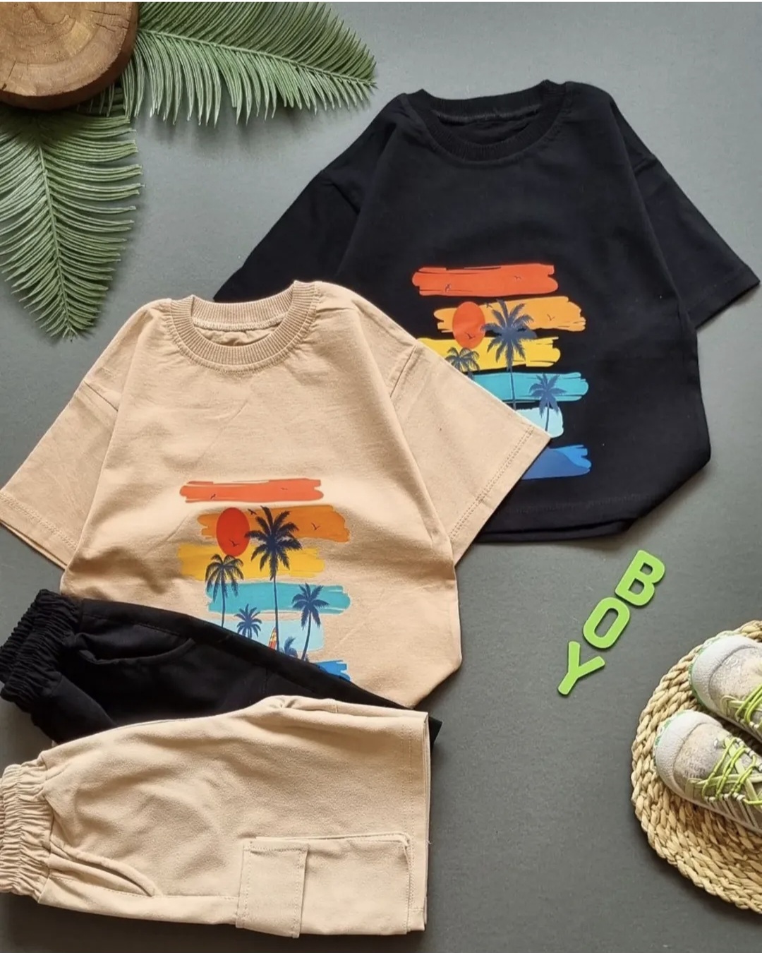ست تیشرت شلوارک بیرونی طرح غروب آفتاب اسپرت مناسب ۲ تا ۹ سال شناسه: 723