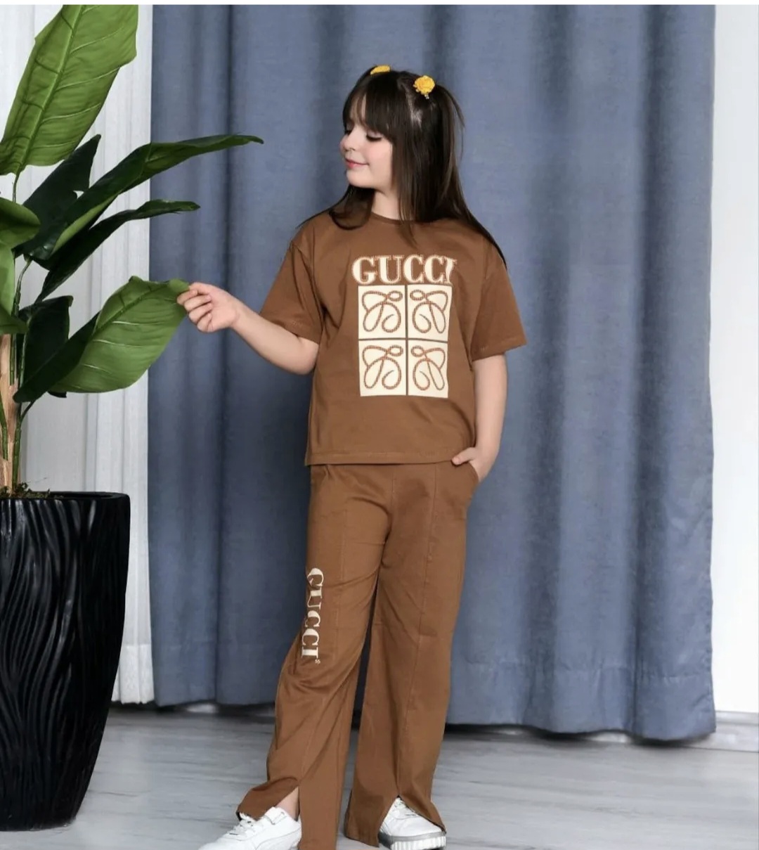 ست تیشرت شلوار دمپاچاک طرح گوچی دخترانه مناسب ۲ تا ۱۴ سال شناسه: 724